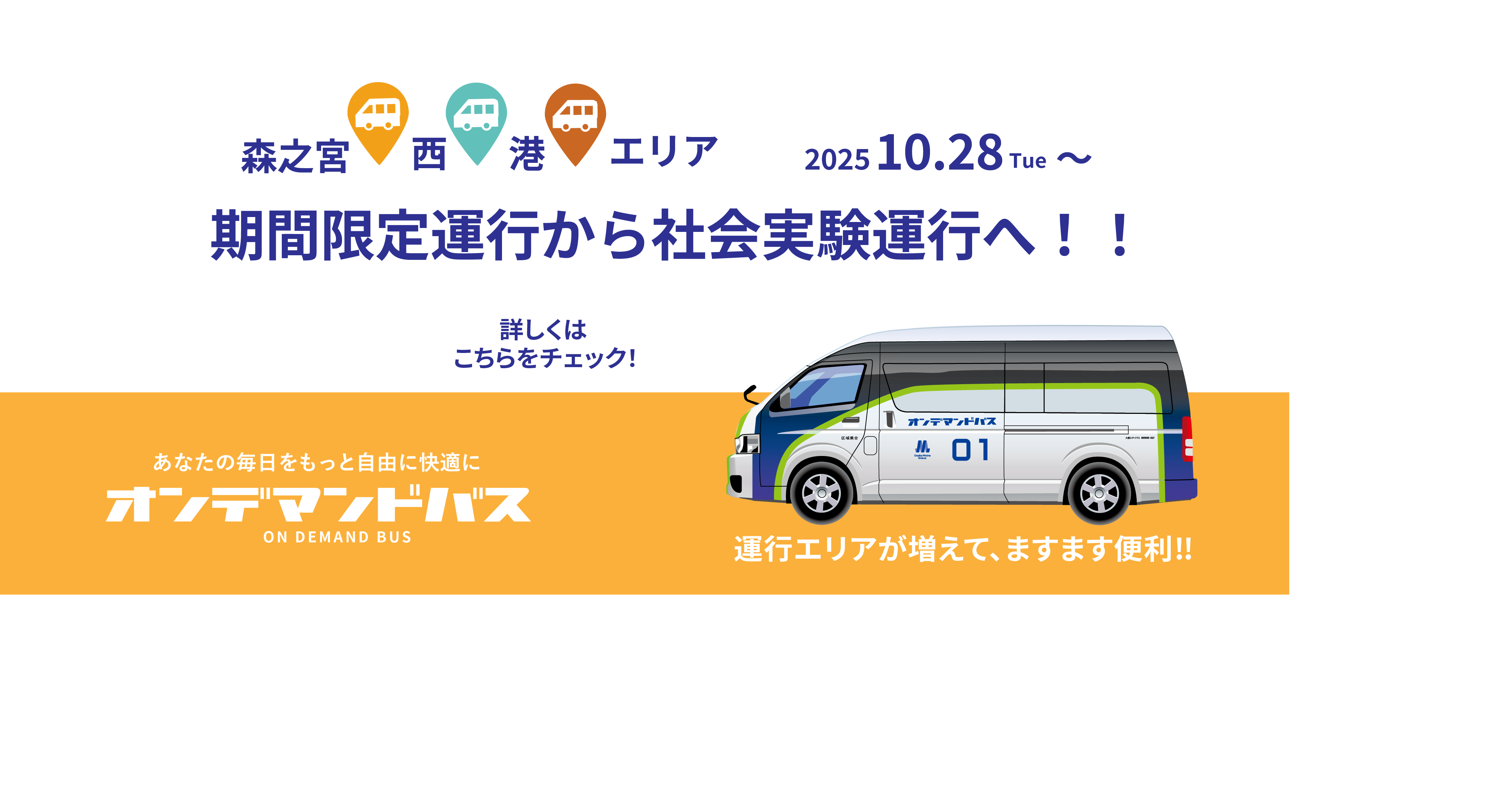2025年10月28日から新たに12エリアでオンデマンドバスを運行します